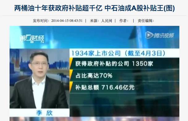 另外,中国的资源税改革起步不久,在此之前,国有能源巨头们几乎可以无偿地将任何一块国土之下的宝贵的煤炭油气财富据为己有而不必向国家交纳一分钱开采费用!与这种力度的补贴相比,国家花在电动汽车之类上面的清洁能源补贴简直就是九牛一毛。