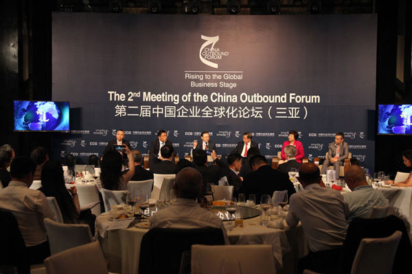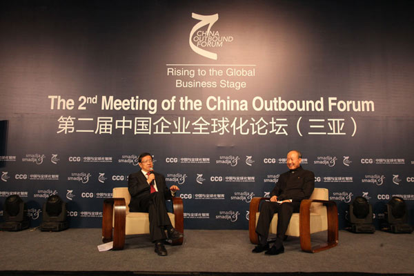 龙永图主席还与三一集团总裁唐修国、联想集团高级副总裁乔健、中国港中旅集团(香港中旅集团)副总经理、香港中旅国际投资公司执行董事、常务副总经理许慕韩、中兴通讯股份有限公司高级副总裁陈健洲、复星集团副总裁兼复兴旅游及商业集团总裁、中国动力基金联席总裁钱建农等嘉宾展开巅峰对话,分享企业国际化进程中的经验。三一集团总裁唐修国表示,制造行业的全球化,最关键的是打造绝对优势产品,契合当地需要,寻找最佳合作伙伴,为客户创造价值、提供优质服务。联想集团高级副总裁乔健表示,国际化成功需要好的策略,包括创新、业务模式等,其中尤为重要的是做好文化整合,建立领导力、团队信任和竞争力,中国企业在全球的整体品牌价值有待提升。中兴通讯股份有限公司高级副总裁陈健洲表示,企业全球化过程中,要恰当的时机、地点抓住机会,同时要平衡好各种风险,大胆决策。复星集团副总裁兼复兴旅游及商业集团总裁、中国动力基金联席总裁钱建农表示,中国企业走向世界的根本出发点还是中国,把中国的比较优势跟国外投资结合起来才能达成成功。要明确战略,提升企业投资后的全球整合能力,互惠互利。许慕韩表示,企业走出有几个关键点,一是时机,二是形式,三是协同,包括文化融合、自身实力、国内外互动、产业链等,要抓住全球化趋势和市场需求。