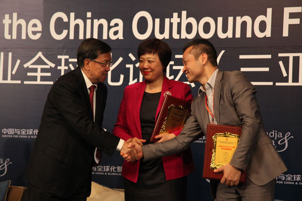原国家外经贸部副部长、博鳌亚洲论坛原秘书长、中国与全球化智库(CCG)主席龙永图、原中国驻法大使、国家创新与发展战略研究会常务副会长吴建民、商务部中国国际经济合作学会会长崔明谟、商务部原欧洲司司长孙永福、中国与全球化智库(CCG)主任、商务部中国国际经济合作学会副会长王辉耀、Smadja & Smadja战略咨询(瑞士)董事长Claude Smadja,向海航集团、三一集团、联想集团、港中旅集团、中兴通讯、复星集团等优秀全球化企业代表颁发“中国企业全球化2015年度杰出成就奖”。海航集团有限公司董事局主席陈峰获颁2015年度中国企业全球化领军人物大奖。