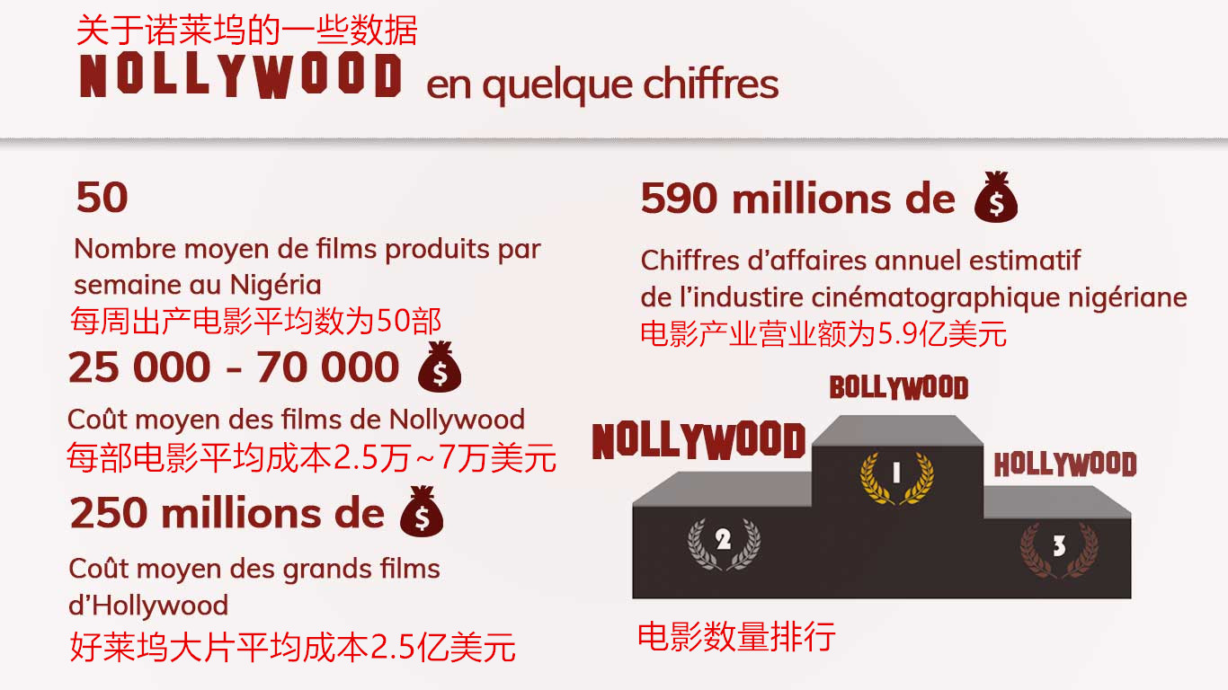早在2011年,诺莱坞电影的年产量就高达2000部,小成本、高回报、非院线是诺莱坞的特色。由于非洲地区整体经济依旧比较落后,上世纪80年代的经济危机之后,像模像样的电影院几乎绝迹,影院票价相比当地居民生活水平十分昂贵,所以诺莱坞的电影流向是VCD和录像带,以及近几年的流媒体。