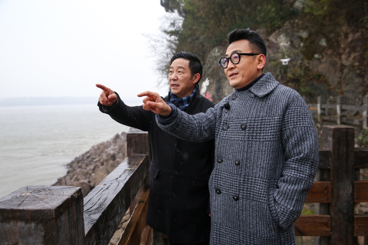 (《一路书香2》剧照窦文涛,欧阳江河凭栏远眺)