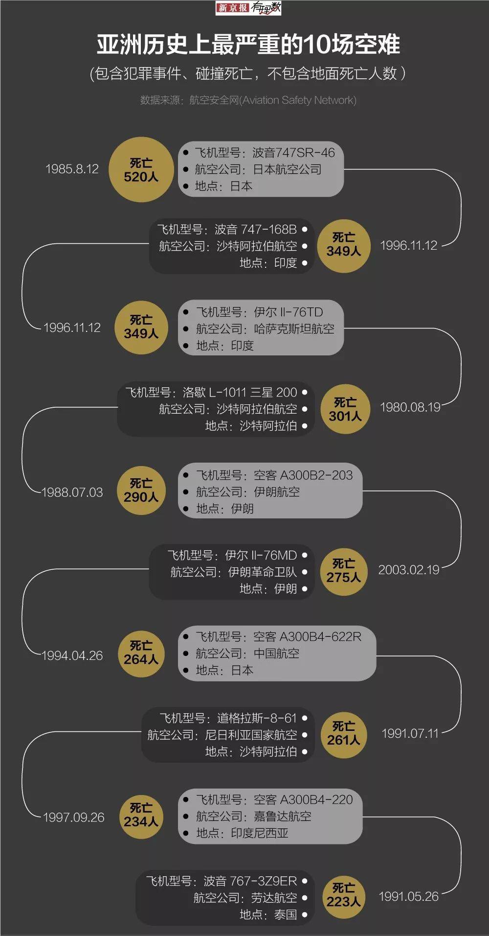 从整个亚洲的实际情况上看,在最严重的飞机事故中,波音的占比并不比空客高多少。
