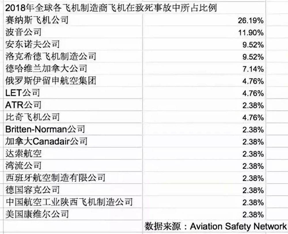 我们在后面的故事中可以看到,这并没有包含在空客出现之前的数据。而统计最近这20年的情况,航空数据网络给出的结果也大致相同。