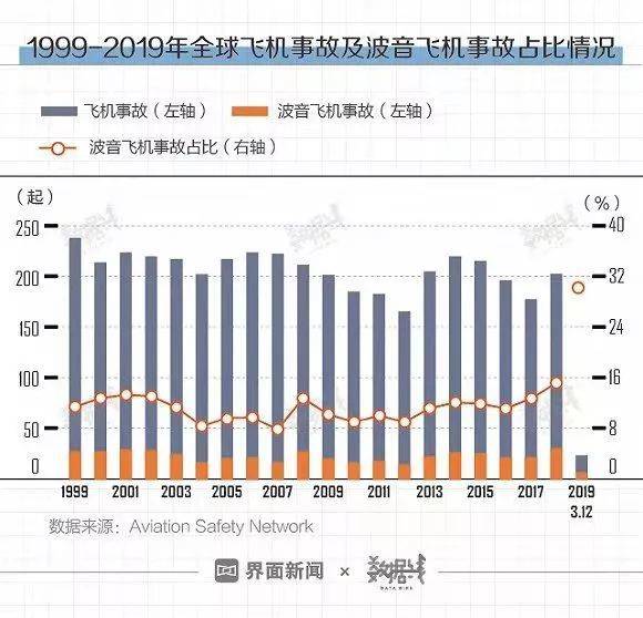 ▲在全球事故所占比例中,波音仍然高居探花之位