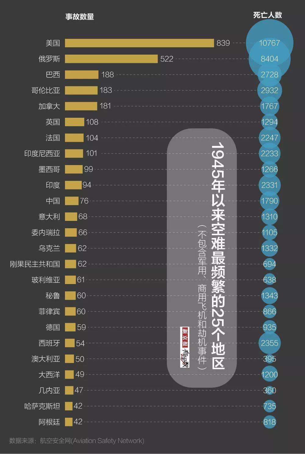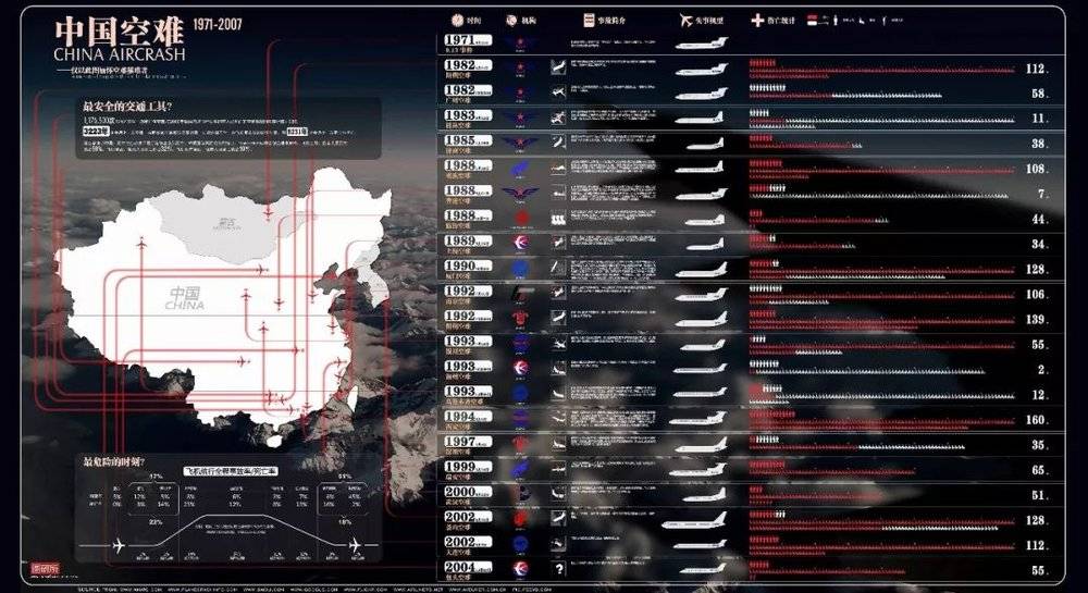 虽然每一次空难都代表着相当多的家庭悲痛欲绝,家庭支离破碎。但是从数据统计的角度上看,以中国这样庞大的乘客人群和这么庞大的航班数量而言,76次的失事数量和不足2000的死亡率,在整个世界当中,是比例相当低的。