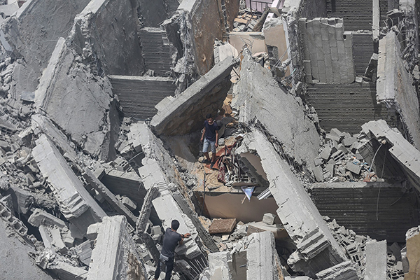 当地时间2019年5月6日,加沙加沙市,遭到空袭后留下的建筑废墟。视觉中国图
