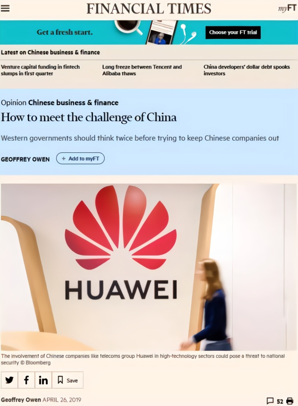 英国智库Policy Exchange产业政策研究负责人杰弗里·欧文2019年4月26日在英国《金融时报》刊发评论:《西方应如何应对来自中国的收购挑战》。他认为,西方国家在把中国投资者挡在门外前应三思而行。
