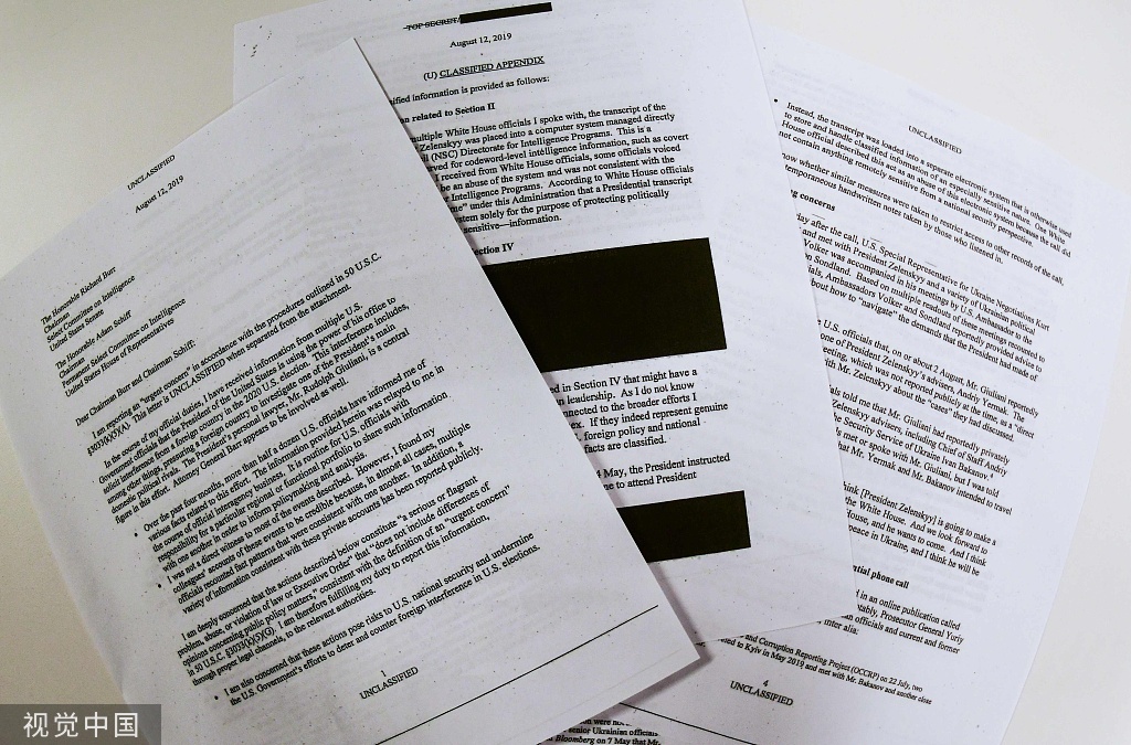 ▲ 9月26日,美国华盛顿特区,特朗普“电话门”检举信。| 视觉中国