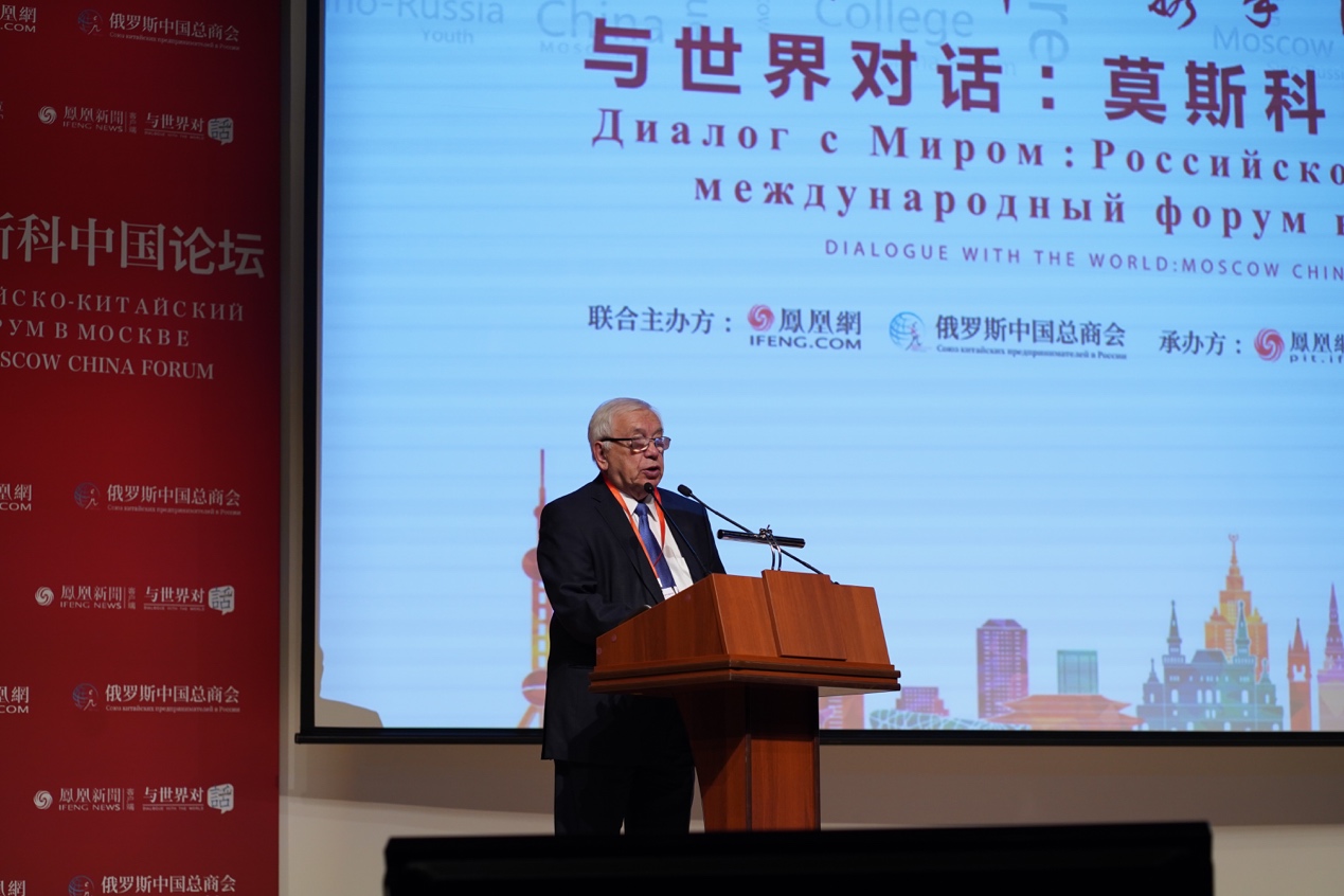 2019年10月12日,由凤凰网、俄罗斯中国总商会联合主办、凤凰网国际智库承办的“与世界对话——莫斯科中国论坛”在俄罗斯首都莫斯科开幕。俄罗斯国家杜马前副主席弗里基米尔·卢金出席本次论坛,就当前国际关系形势和未来中俄两国关系如何发展的问题发表主旨演讲。
