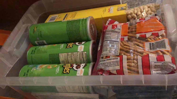 在她一个人租住的房屋内,冰箱冷冻室被肉塞得满满的。她说虽然自己不爱吃肉,但还是跟风买了很多。冷藏室有水果蔬菜和饮料,对于独居的阿再来说,至少是两三周的量。薯片、饼干等零食也是满满一箱,此外还有三桶饮用水和十几瓶矿泉水。